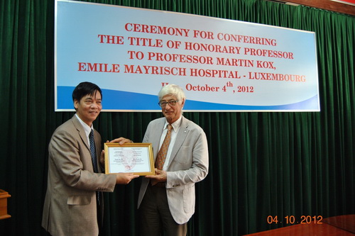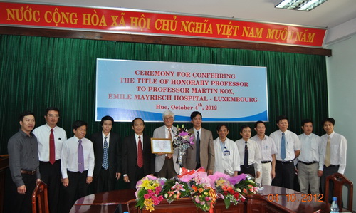 Ngày 09/04/2012, tại Trường Đại học Y Dược Huế , Đại học Huế đã tổ chức buổi lễ trao tặng danh hiệu Giáo sư Danh dự cho Giáo sư Martin Kox thuộc Bệnh viện Emile Mayrisch, Luxembourg.