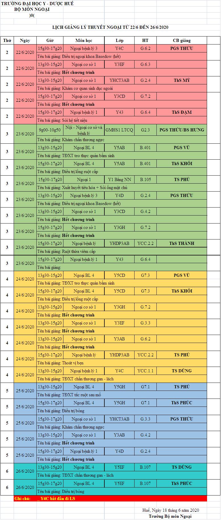 Lịch giảng LT tuần 22.6.2020